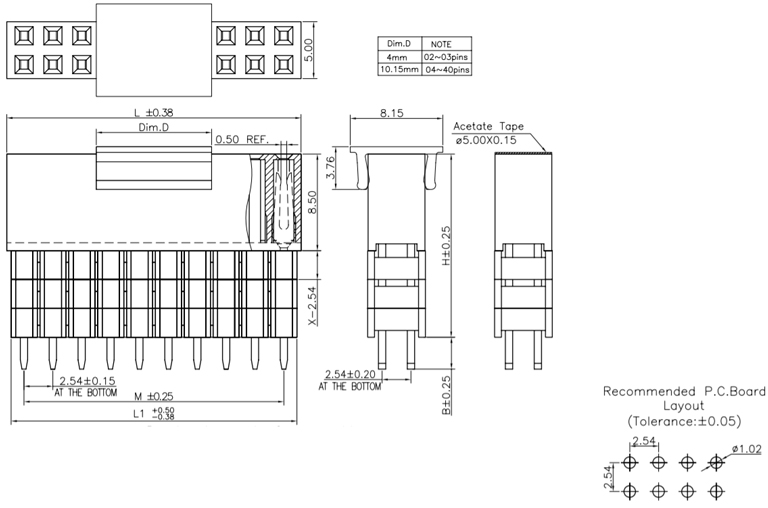 絕緣材料:PBT,尼龍,LCP,UL 94V-0