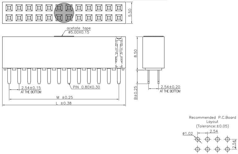 P/H0.8mm 雙排排母 BC222